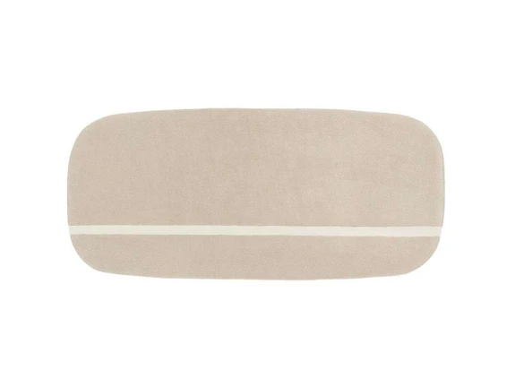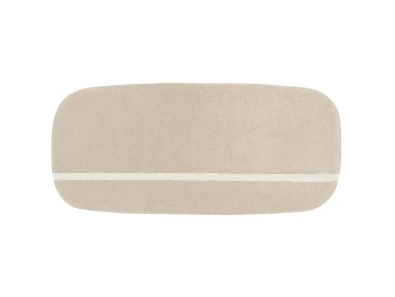 Ud over sine rent praktiske kvaliteter kommer tæppet også i et sofistikeret design. Den ensfarvede overflade brydes af en kontraststribe, der er fordybet med 3 mm. i forhold til resten af tæppet, hvilket skaber et smukt modspil i det overordnede udtryk og tilføjer en personlig kant, der giver designet genkendelsesværdi.
