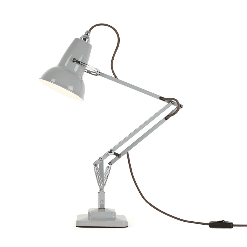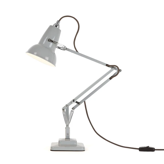 Original 1227 Mini Skrivebordslampe Dove Grey er en morsom og smuk nyfortolkning af den originale Original 1227 bordlampe, der blev tegnet af George Carwardine tilbage i 1935. Det engelske lysfirma Anglepoise har taget den oprindelige form, skrumpet den ned i to tredjedele af den originale størrelse, og givet den en ny smart svanehals, der erstatter den klassiske fjederkonstruktion.