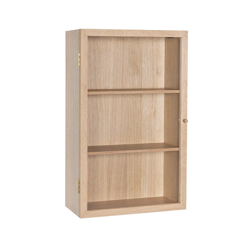 Panorama Vægskab Natur fra Hübsch er det ideelle valg for dig, der ønsker at fremvise dine yndlingskaffekopper på en stilfuld måde. Dette vægskab, også kendt som et glasskab, er fremstillet af FSC®-certificeret egetræsfiner og egetræ, hvilket gør det til et bæredygtigt valg for dit hjem. Med en højde på 80 cm, en længde på 50 cm og en dybde på 22 cm, passer det perfekt ind i de fleste rum uden at optage for meget plads. Den naturlige farve og klare glasdøre giver et elegant og tidløst udtryk, der komplementerer enhver indretning. Uanset om du placerer det i køkkenet, stuen eller spisestuen, vil dette skab tilføje en varm og indbydende atmosfære. Det er ikke kun et praktisk opbevaringsmøbel, men også en smuk måde at vise dine mest skattede genstande frem på.