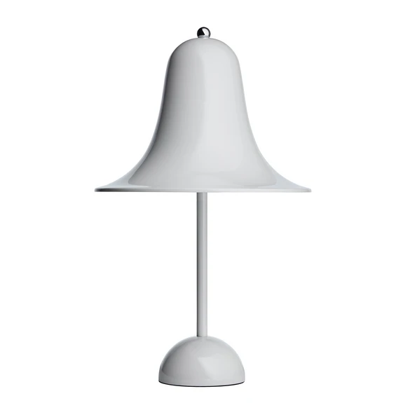 Pantop Bordlampe Ø23 Mint Grey er et af Verner Pantons Ikoniske design. Den smukke lampe blev designet i 1980’erne og afspejler tydeligt Pantons velkendte formsprog og hans legende udtryk. Den karakteristiske Pantop lampeskærm, henleder tankerne på en traditionel klokke. Lyskilden er skjult i bunden af skærmen, hvorfra lyset reflekteres i skærmen inderside. Den buede skærm og brede åbning, sikrer at lyset bliver optimalt fordelt i omgivelserne.