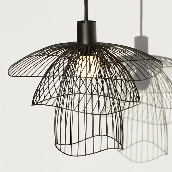 Papillon Pendel XS Black er en lampe, der emmer af sarthed og ynde. Den lette og luftige lampeskærm består af tre kupler i forskellig størrelse og form. Disse danner tilsammen en smuk helhed, der kunne minde om en blomst på vej til at springe ud. Lampens navn er imidlertid afledt af det franske ord for sommerfugl, og med sin florlette elegance er denne kobling nem at få øje på.
