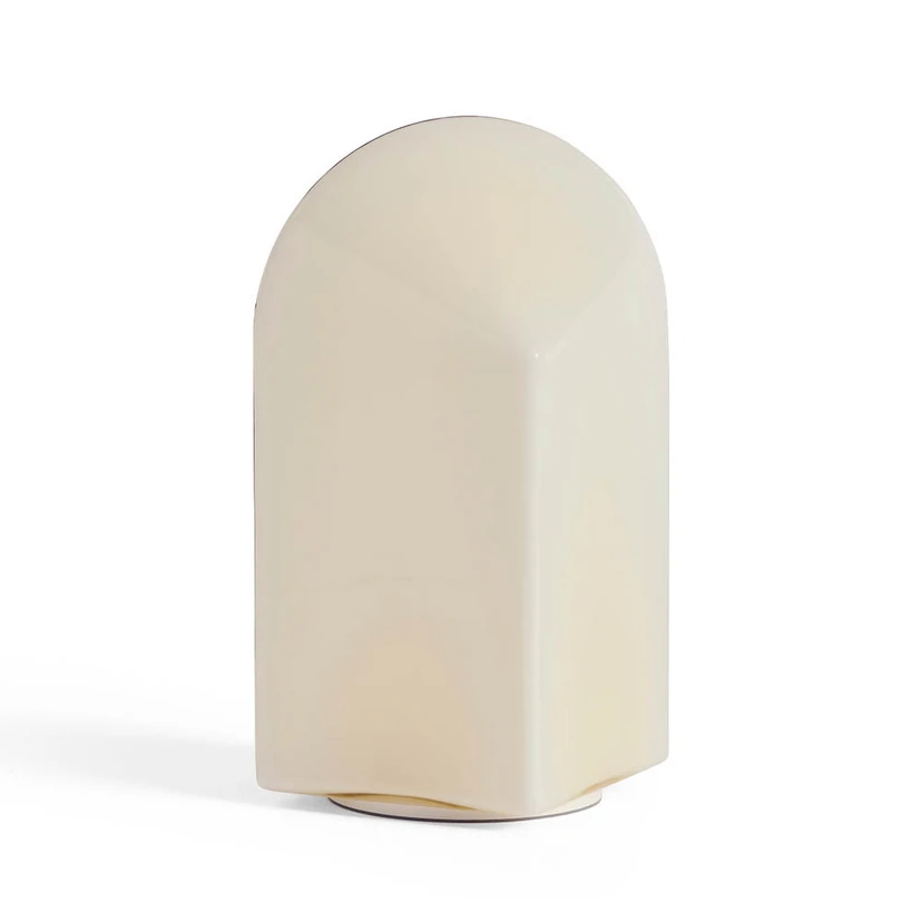 Parade 240 Portable Bordlampe Shell Hvid fra HAY er en elegant og funktionel tilføjelse til dit hjem. Denne bordlampe, designet af Viola Heyn-Johnsen og Jonas Trampedach, er en skulpturel perle med en unik geometrisk form, der ændrer udtryk afhængigt af vinklen. Med en kvadratisk base og en buet top i hvidt glas, tilføjer denne lampe et moderne touch til ethvert rum.