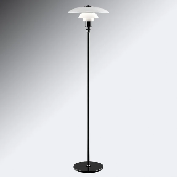 PH 3½-2½ gulvlampe sort metalliseret er medlem af 3-skærmsfamilien, der i dag tæller 20 lamper, heraf 3 til udendørs brug. Helt tilbage i 1925/1926 designede Poul Henningsen 3-skærmssystemet, hvor han i samarbejde med Louis Poulsen tegnede de første lamper til en udstilling i Paris.