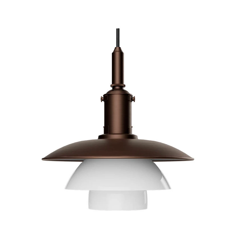 PH 3/3 Pendel Aged Brass/Opal Glass - Louis Poulsen er en elegant tilføjelse til dit hjem, der kombinerer tidløst design med funktionalitet. Denne pendel fra Louis Poulsen er skabt af den ikoniske designer Poul Henningsen og er en del af hans berømte treskærmssystem. Pendlen er fremstillet af glas og messing, hvor midter- og underskærmene er lavet af mundblæst opalhvidt glas, der sikrer en blød og jævn lysfordeling. Den brunerede messingoverskærm er malet hvid på undersiden, hvilket giver et behageligt, diffust og blændfrit lys, der primært rettes nedad. Med en højde på 30,0 cm og en diameter på 28,7 cm passer denne lampe perfekt til ethvert rum, hvor du ønsker at skabe en varm og indbydende atmosfære. Gør dit hjem lysere og mere stilfuldt med denne smukke pendel, der er både praktisk og æstetisk tiltalende.