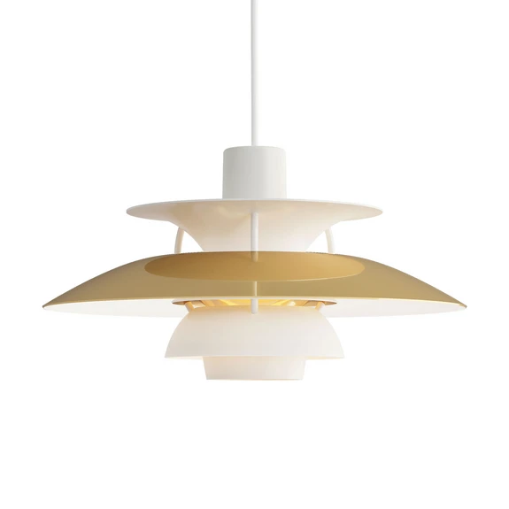 PH 5 er resultatet af Henningsens ihærdige arbejde med at skabe en total blændfri pendel og er en videreudvikling af hans treskærmssystem. Lampen har fem skærme hvoraf den nederste er skjult under de øverste fire. Designet skaber en behagelig og indbydende atmosfære hvor menneskets lysoplevelse er i centrum. Med sin spejlende messingfinish reflekterer lampen smukt sine omgivelser i rummet på en elegance måde – og det er uanset om den er tændt eller slukket.