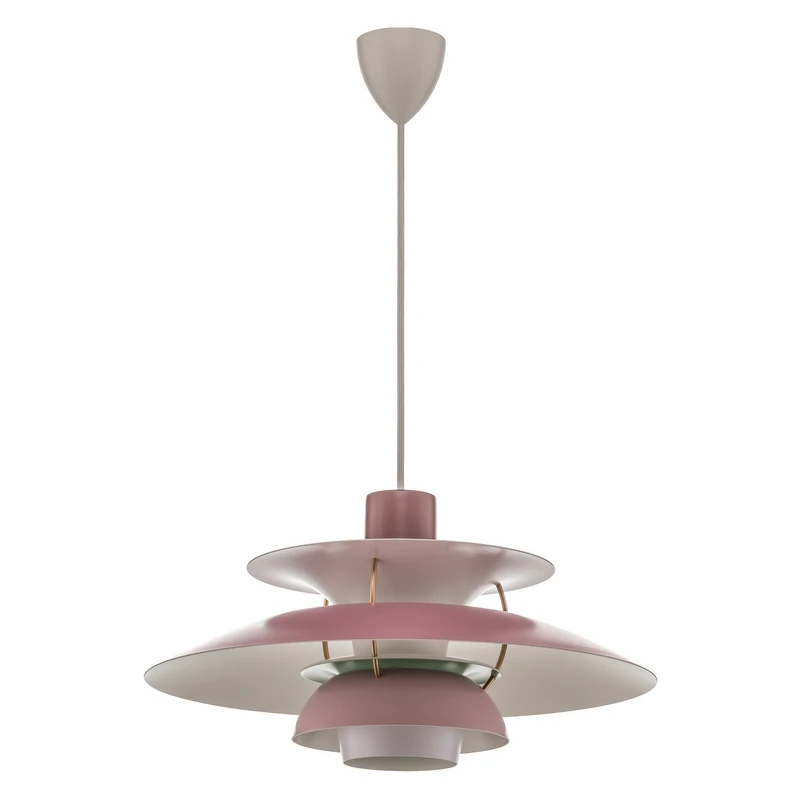 PH Pendel Nuancer Af Rose blev designet i 1958 af Poul Henningsen (1894-1967), som var pioneer indenfor lysdesign og helligede det meste af sit liv til at tæmme det elektriske lys.