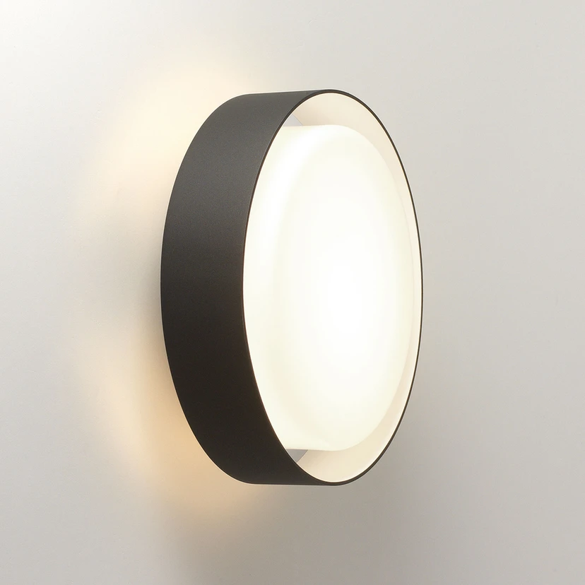Plaff-On Loftlampe/Væglampe Ø33 IP54 Black er en loft/væglampe hvis skønhed ligger i dens enkelhed og klarhed, samtidig med at den kan tilbyde flere lyseffekter takket være sit design. Lampen er i blæst hvidt glas og med en ydre aluminium skærm med hvid inderside, der fungerer som reflektor og da lampen er sat lidt fra loftet/væggen, bliver lyset filtreret opad, som skaber en smuk glødende lys-ring omkring lampen.