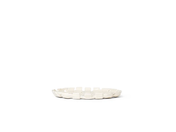 Plait Platter Off-white fra Ferm Living er et elegant fad, der bringer en kunstnerisk dimension til dit hjem. Dette smukke stykke er fremstillet af glaseret keramik og er inspireret af traditionelle kurvefletningsteknikker. Hvert element er omhyggeligt håndformet, hvilket resulterer i en unik og bevidst ujævn platte, der sikrer, at ingen to er helt ens. Den off-white farve tilføjer en tidløs elegance, der passer perfekt ind i enhver indretning. Plait Platter er ideel til at præsentere frisk frugt eller brød, og dets raffinerede design gør det til en funktionel og æstetisk tilføjelse til dit køkken eller din spiseplads. Som et håndlavet produkt kan der forekomme små variationer, hvilket kun bidrager til dets charme og autenticitet. Giv dit hjem et strejf af kunstnerisk flair med dette udsøgte fad fra Ferm Living. .