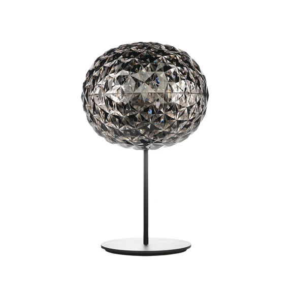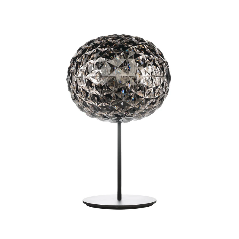 De særlige karakteristika ved Planet Bordlampen Large i smoke er diffuserens, let, elliptiske form og dens mangesidede design, der reflekterer lyset adskillige gange og skaber en fantastisk mosaik af lys, igennem det gennemsigtige formstøbte termoplast.