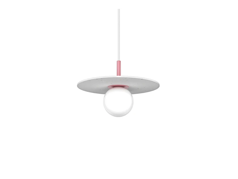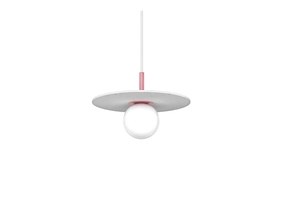 Pluto Small Pendel Bubblegum Pink er et dekorativt belysningsobjekt med et legende design, der gør lampen til en smuk tilføjelse til indretningen. Lampen er præget af et rundt formsprog, der går igen i den cirkulære lampeskærm og i den sfæriske glaskugle, der omslutter lyskilden. Farveskemaet er hvidt og neutralt men får et spændende modspil af en kontrastfarve på stellet, som er med til at give lampen et personligt udtryk. Glasset spreder lyset ud, så hele kuglen lyser op i et smukt skær, mens skærmen dirigerer lyset nedad i et effektivt downlight. Da skærmen ikke går ned over siderne, kan lyset også skinne vandret ud i alle retninger, hvilket gør Pluto Pendel egnet til grundbelysning midt i rummet såvel som over borde og andre overflader.