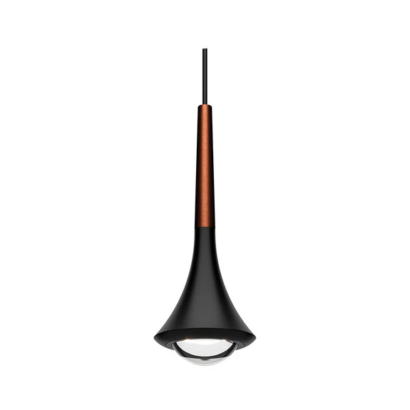 Rain Pendel 2700K Black/Bronze fra Lodes er en elegant og minimalistisk pendellampe, inspireret af forårets lette regndråber. Dens buede, koniske form hænger fra loftet som en dråbe fanget i tid, og den slanke metalophæng understøtter en kraftig LED-lyskilde, som giver et varmt og behageligt lys på 2700K. Med et farvegengivelsesindeks (CRI) på 90 gengiver Rain naturlige farver uden forvrængning, hvilket sikrer, at den ikke kun er smuk, men også funktionel.