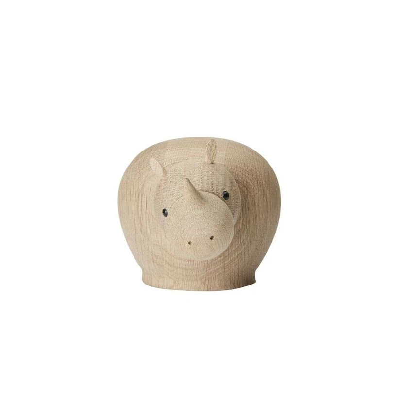 Rina Rhinoceros Medium Oak er designet af danske Steffen Juul. De skønne og elskelige dyr er en del af stor designtradition i Danmark, som måske nok startede for mange år siden og hvor formålet var legetøj til overklassen. I dag elsker vi at bringe disse skønne dyr ind i vores indretning.