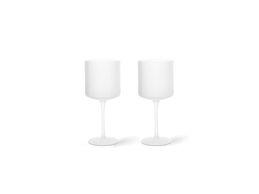 Ripple Rød Wine Glasses Set of 2 Frosted fra Ferm Living er det perfekte valg for dig, der ønsker at tilføje et strejf af elegance til din vinoplevelse. Disse mundblæste vinglas er en del af den ikoniske Ripple-serie, kendt for sit tidløse og raffinerede design. De klare glas med det karakteristiske riflede mønster kombinerer stilfuld alsidighed med en klassisk æstetik, der vil imponere dine gæster og løfte din borddækning til nye højder. Fremstillet af mundblæst glas, tilbyder disse rødvinsglas en unik følelse af kvalitet og håndværk, der gør dem til en uundværlig del af dit hjem. Med en volumen på 32,5 cl er de ideelle til at nyde din yndlingsvin, og de tåler opvaskemaskine, hvilket gør dem både praktiske og smukke. Gør din vinoplevelse ekstraordinær med disse elegante glas fra Ferm Living. .