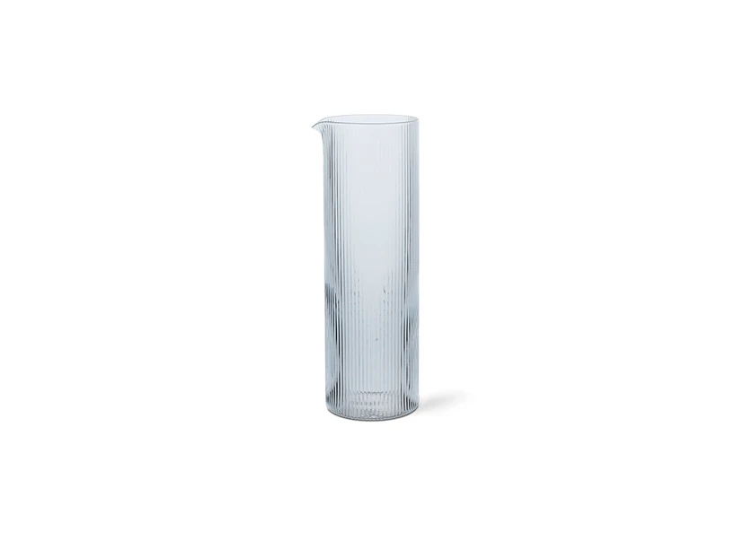 Ripple Water Jug Klar fra Ferm Living er en elegant og funktionel tilføjelse til dit hjem. Denne vandkande, fremstillet af mundblæst glas, udstråler en tidløs skønhed, der er kendetegnende for den populære Ripple serie. Den klare farve og det raffinerede design gør den til et alsidigt valg, der passer ind i enhver indretning. Med en kapacitet på 112 cl er denne kande perfekt til servering af alle slags drikkevarer, fra forfriskende vand til lækre cocktails, hvilket gør den ideel til både hverdagsbrug og festlige lejligheder. Den præcise tud sikrer en kontrolleret hældning, så du undgår spild. Ripple Water Jug er ikke kun smuk, men også praktisk, da den tåler opvaskemaskine, hvilket gør rengøringen til en leg. Gør din borddækning ekstraordinær med denne stilfulde kande, der kombinerer æstetik og funktionalitet på bedste vis. .