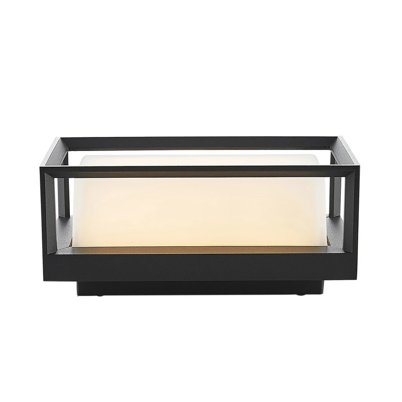 Ronida Udendørs Væglampe Dark Grey er en stilfuld lyskilde til udendørs brug. Den enkle form og klassiske sort-hvide farvekomposition gør lampen glimrende egnet til mange typer hjem og bygninger, hvor den nemt kan indpasses i det eksisterende miljø. Stellet er formet som en ramme af aluminium med en grafitgrå overfladefinish, mens lyskilden skinner ud fra et hvidt, satineret rektangel i midten. Selve lyskilden er en indbygget LED, der afgiver et energieffektivt lys i et varmhvidt skær. Da glasskærmen har en mat overflade, udsendes lyset blødt og blændfrit til omgivelserne.