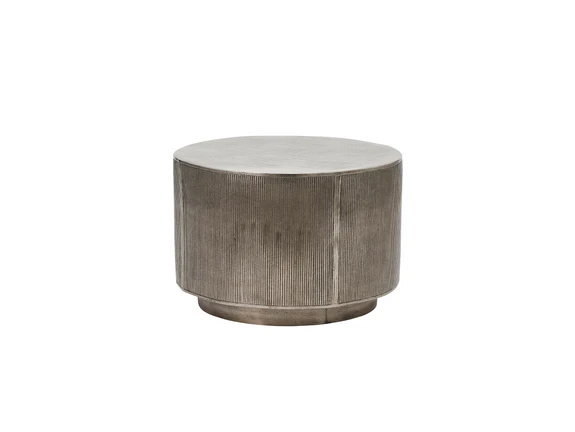 Rota Coffee Table H35 Ø50 Brushed Silver fra House Doctor er et rundt sofabord, der tilføjer karakter og charme til din indretning. Bordet er designet med lodrette riller og en uregelmæssig overflade, som med sine bevidste ufuldkommenheder giver et unikt og raffineret udtryk.