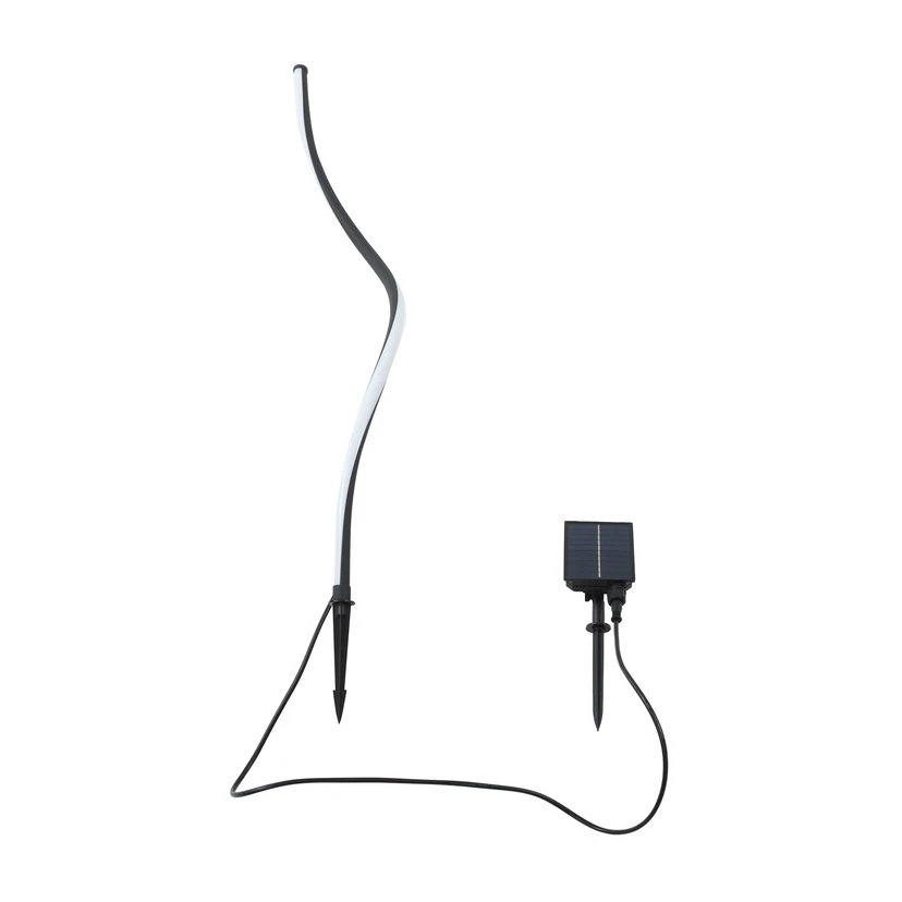Sabriel Curved Solcellelampe Sort fra Lindby er den ideelle løsning til at oplyse din have med stil og bæredygtighed. Denne elegante havelampe er designet til at give et moderne touch til dine udendørsarealer, samtidig med at den udnytter solens energi til at lyse op i mørket. Med en højde på 101,5 cm og en diameter på 2 cm passer denne slanke solcellelampe perfekt som bedlampe i dine blomsterbede eller langs stierne i haven. Fremstillet af holdbart aluminium og i en tidløs sort farve, er Sabriel Curved både robust og æstetisk tiltalende. Den kræver ingen elektriske installationer, hvilket gør den nem at placere og flytte efter behov. Oplev, hvordan denne solcellelampe fra Lindby kan forvandle din have til et indbydende og hyggeligt rum, hvor du kan nyde de lange sommeraftener.