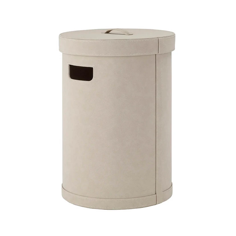 Sahla Vasketøjskurv M Nomad fra Blomus er den perfekte løsning til dig, der ønsker en stilfuld og diskret måde at opbevare dit vasketøj på. Denne kurv, fremstillet i læder, kombinerer en klassisk cylindrisk form med et blødt faux ruskindsovertræk, hvilket gør den til et elegant blikfang i ethvert rum. Den medfølgende låg med håndtag sikrer, at kurven forbliver lukket, hvilket tilføjer et strejf af raffinement til dit hjem.
