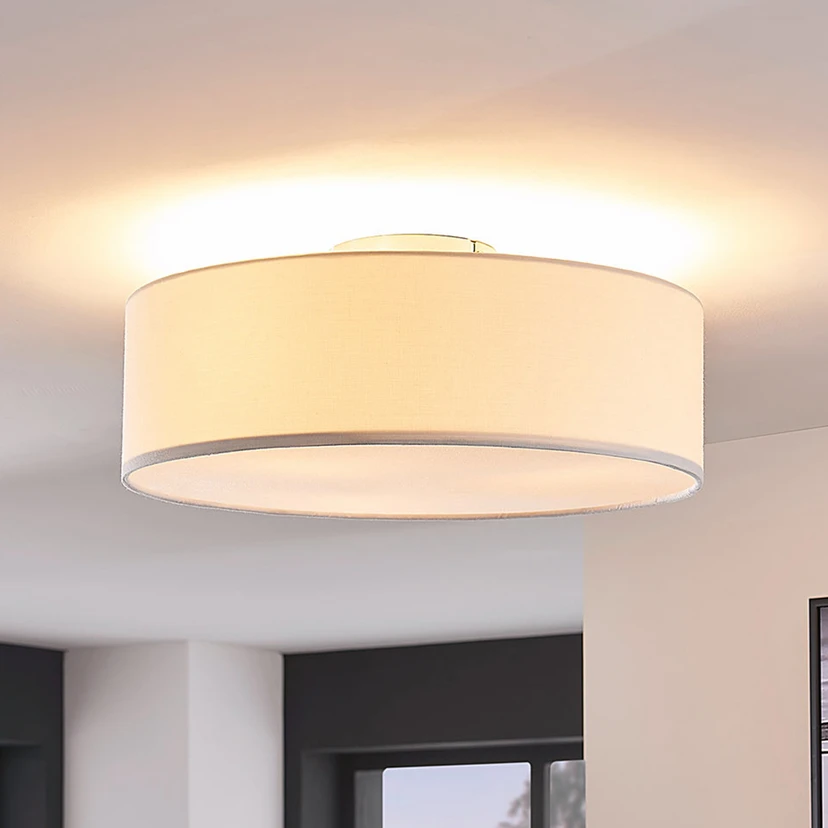 Sebatin loftlampe Ø40 creme/hvid/nikkel er det sikre valg, hvis du søger en behagelig belysning i et tidløst og evigt stilfuldt design, der let kan integreres i rummet. Den cylindriske lampeskærm i stof fra Sebatin er enkel og fri for unødvendige detaljer, mens den neutrale farve i grå og hvid virker moderne og ikke forstyrrende i forhold til resten af indretningen. Lyskilderne stråler ud fra en åbning i toppen af lampeskærmen, hvilket skaber et harmonisk indirekte lys på loftet, og gennem lampeskærmen af stof, hvor det spredes jævnt til et behageligt lys hele vejen rundt.