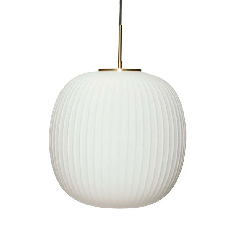 Serene Pendel Ø42 Opal/Brass har et enkelt, tidløst og stilfuldt design, der fortjener en plads i alle indretninger. Den fås med en flot hvid kuppel i glas og messing, hvor dens hvide farve og bløde form gør, at den spreder et varmt og behageligt lys i rummet, som ikke virker blændende grundet det matteret glas. Disse skønne pendler er håndlavet, hvilket gør, at hver enkelt pendel er unik i sit udtryk og sin størrelse. Lamperne gør sig godt over spisebordet, sofabordet, i hyggekrogen eller gangpartiet, hvor man formår at skabe en hyggelig stemning og en god belysning, med disse unikke og elegante pendler.