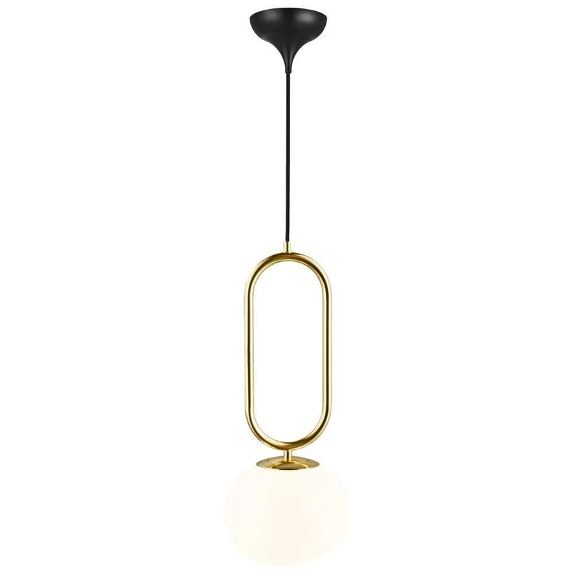 Shapes 27 Pendel Brass er en del af den smukke, formorienterede Shapes-serie tegnet af den danske designer Maria Berntsen. Under udtænkningen af Shapes-lamperne har Berntsen hentet inspiration fra organiske former i naturen, hvilket tydeligt ses ved den runde men let asymmetriske skærm, der minder om en ægte perle. Skærmen er udført i mundblæst glas og har en fascinerende opalhvid overflade, der både er uigennemsigtig og samtidig skinnende. Den hvide farve spiller smukt sammen med det skinnende messingstel og skaber tilsammen et klassisk orienteret design.