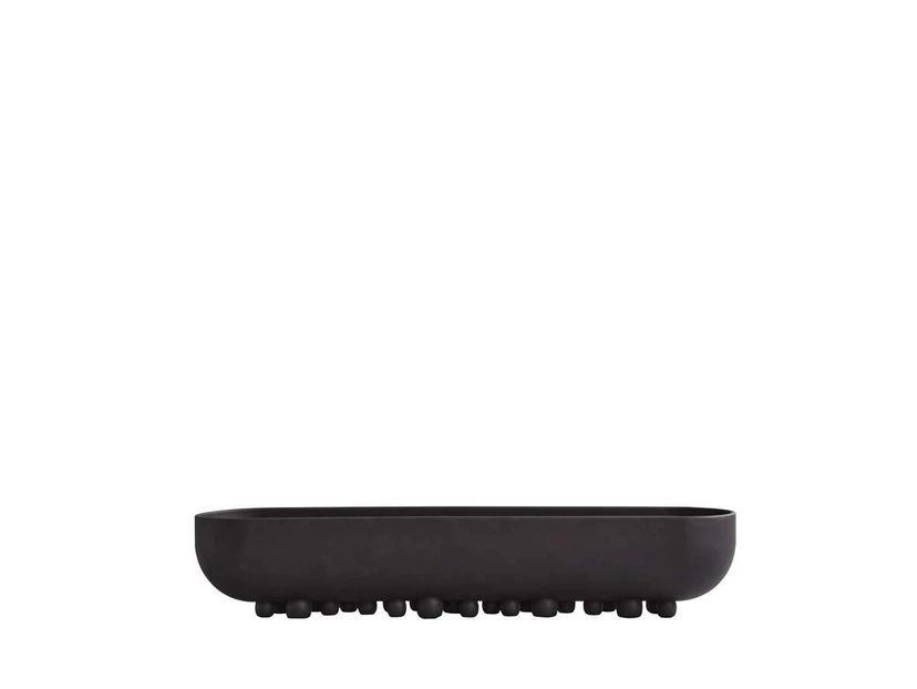 Shinju Tray Big Coffee er en dekorativ bakke med et sofistikeret præg, der både kan være til glæde og gavn i hverdagen. Bakken, der er tegnet af designduoen Kristian Sofus Hansen & Tommy Hyldahl, har sit navn fra det japanske ord for ’perle’. Navnet er velvalgt, da bakken hviler på adskillige, vilkårligt placerede keramikperler, der bryder med forventningerne og tilføjer en vis lethed til designet. Selve bakken matcher i både farve og materiale. Overfladen er håndglaseret for at opnå en unik schattering og tekstur, der er individuel fra bakke til bakke.