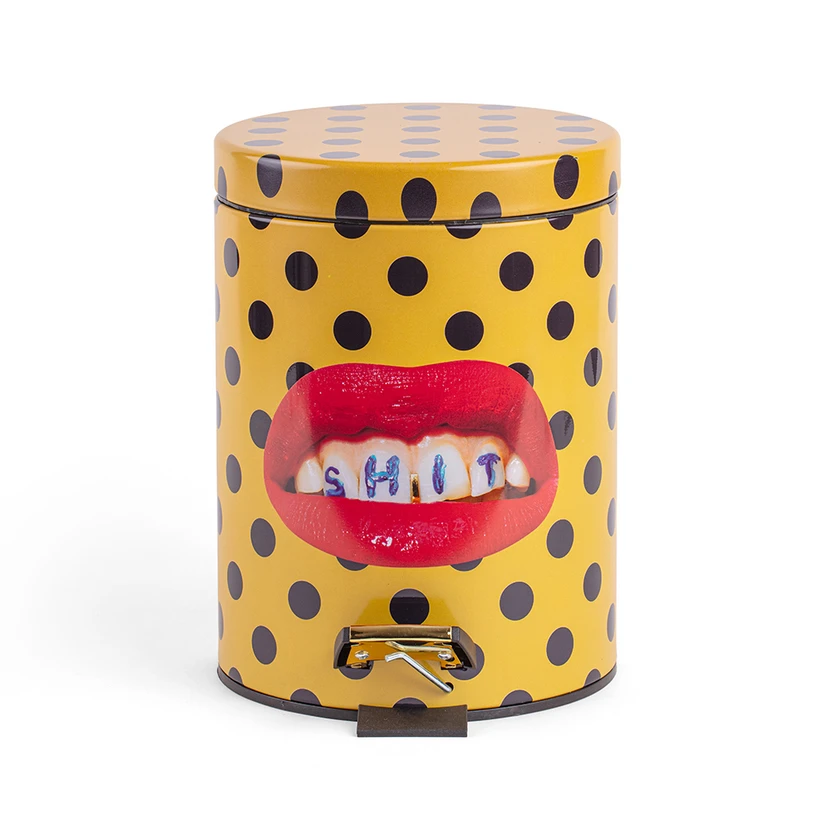 Shit Toiletpaper Home Dustbin Ø25xH39,5 Gul/Sort/Multicolor fra Seletti er en unik toiletspand, der kombinerer sort humor med et farverigt design. Denne skraldespand er skabt i samarbejde med TOILETPAPER og er perfekt til dig, der tør skille dig ud med din indretning. Med en diameter på 25 cm og en højde på 39,5 cm passer den perfekt ind i både badeværelset og andre rum, hvor du ønsker at tilføje et strejf af kreativitet. Lavet af holdbart metal og plast, sikrer denne skraldespand både funktionalitet og stil. De dristige farver i sort, gul og multicolor gør den til et iøjnefaldende element i dit hjem. Uanset om du bruger den som en praktisk toiletspand eller som en dekorativ skraldespand, vil den med garanti tiltrække opmærksomhed og komplimenter. Gør din indretning mere spændende med dette unikke stykke fra Seletti..