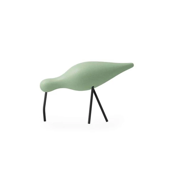 Shorebird Large Dusty Green fra Sigurjón Pálsson og Normann Copenhagen er et skægt og elegant indspark til indretningen. Shorebird står smukt på reolen, stuebordet, skænken eller kommoden, hvor det ligner den skraber overfladen efter frø eller drikker vand. Fuglen er uden detaljer på kroppen, hvilket giver den et stilrent og minimalistisk udtryk, der passer perfekt ind i den underspillede elegance, som man ofte finder i den skandinaviske indretningsstil.