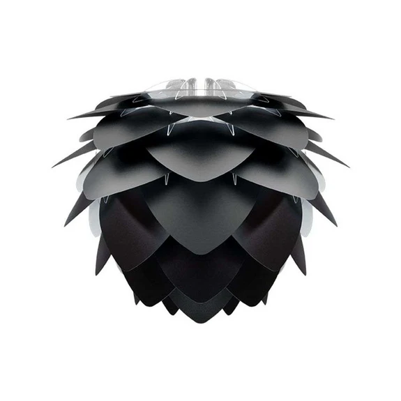 Silvia Mini Skærm Black fra Umage er med sine karakteristiske bladformede lag en moderne klassiker, der passer inden for i et hvert hjem. Den er superelegant over et bord, i entréen, i soveværelset … ja, hvor som helst … el-pæren er nemlig ikke synlig og du kan dermed hænge din lampe i netop den højde, der passer til dit rum.
