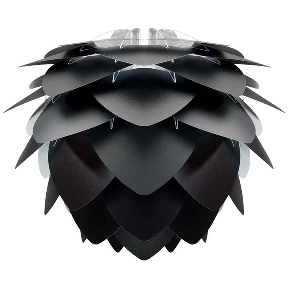 Silvia Skærm Black fra Umage er med sine karakteristiske bladformede lag en moderne klassiker, der passer inden for i et hvert hjem. Den er superelegant over et bord, i entréen, i soveværelset … ja, hvor som helst … el-pæren er nemlig ikke synlig og du kan dermed hænge din lampe i netop den højde, der passer til dit rum.
