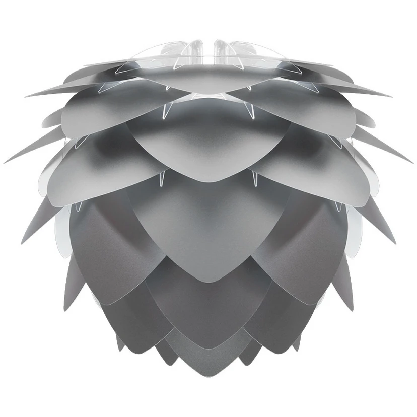 Silvia Skærm Grey fra Umage er med sine karakteristiske bladformede lag en moderne klassiker, der passer inden for i et hvert hjem. Den er superelegant over et bord, i entréen, i soveværelset … ja, hvor som helst … el-pæren er nemlig ikke synlig og du kan dermed hænge din lampe i netop den højde, der passer til dit rum.