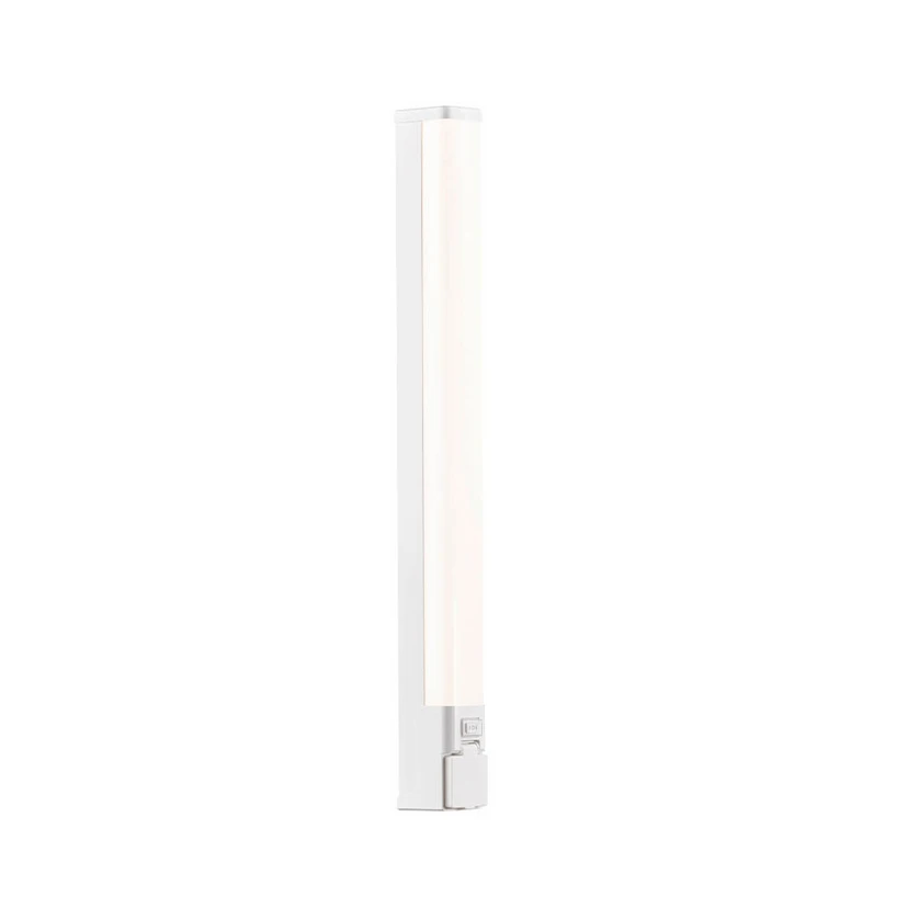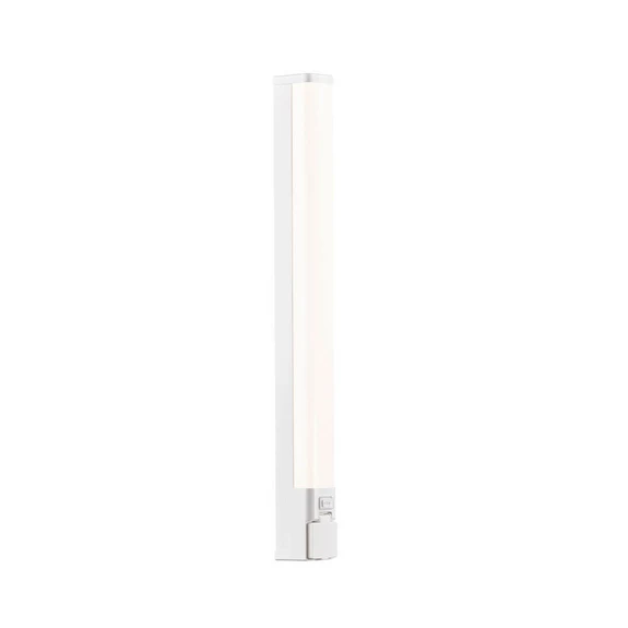 Lampen er fremstillet af holdbart aluminium og plast, og den hvide farve passer perfekt ind i ethvert moderne hjem. Med en bredde på 7,0 cm, en højde på 60,0 cm og en dybde på 5,6 cm, er den både diskret og effektiv. En ekstra funktion er den indbyggede stikkontakt, der gør det nemt at tilslutte en barbermaskine, hårtørrer eller lignende apparater.