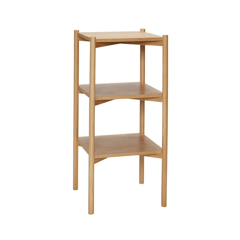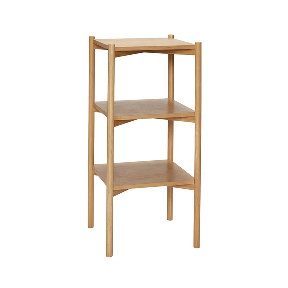 Solution Reol Natur er den ideelle løsning til at forvandle et overset hjørne i dit hjem til et stilfuldt og funktionelt område. Denne elegante reol fra Hübsch er designet til at imødekomme dine behov for opbevaring og udstilling. Med sin højde på 91 cm er den perfekt til at fremvise dine yndlingsbøger, grønne planter eller værdifulde arvestykker. Reolen er fremstillet af FSC®-certificeret egetræsfiner og MDF, hvilket sikrer et bæredygtigt valg uden at gå på kompromis med kvaliteten. Den naturlige farve tilføjer en varm og indbydende atmosfære til ethvert rum. Hver hylde kan bære op til 5 kg, hvilket giver dig fleksibilitet til at arrangere dine genstande, som du ønsker. Uanset om du placerer den i stuen, soveværelset eller kontoret, vil Solution Reol Natur fra Hübsch tilføre en tidløs elegance og funktionalitet til dit hjem.