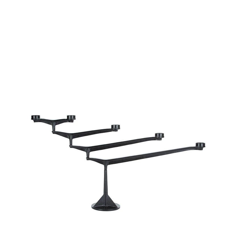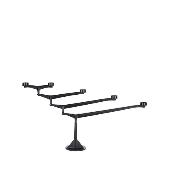 Spin Lysestage Black - Tom Dixon er et unikt stykke boligtilbehør, der kombinerer funktionalitet og æstetik. Denne lysestage er fremstillet af robust metal i en elegant sort farve, og den måler imponerende 105 cm i længden og 55 cm i højden. Spin lysestagen er designet til at være et dynamisk midtpunkt på dit bord, hvor dens kinetiske egenskaber tillader uendelige arrangementer af lys. Den kan med lethed holde både fyrfadslys og slanke stearinlys, hvilket gør den alsidig og elegant i enhver indretning. Inspireret af de tunge kranmekanismer fra havneområder og den mekaniske skønhed fra 1950'ernes mobiler, bringer denne lysestage en industriel charme ind i dit hjem. Med Tom Dixons sans for design og kvalitet, er Spin lysestagen ikke blot en praktisk genstand, men også et kunstværk, der tilføjer karakter til dit rum.