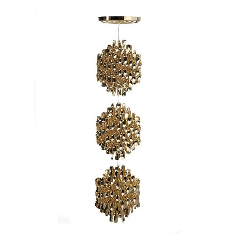 Spiral SP3 Guld er et ikonisk design af danske Verner Panton, som smukt viser hans bud på orden i kaos. Spiral serien består af en række pendler med det samme karakteristiske design med klaser af spiraler, der skaber liv og dynamik, som gør den yderst iøjnefaldende, og sammenspillet mellem de enkelte spiraler gør, at de smukt oplyser ethvert rum med sin funktionalitet og æstetik. Du kan placere lampen forskellige steder i hjemmet, hvor over spisebordet, i entréen eller i stuen blot er nogle af de oplagte steder. Her skaber de mange spiraler en behagelig og diffus spredning af lyset ud til hele rummet, som sætter en hyggelig og indbydende stemning. Kollektionen er et nydeligt eksempel på Pantons eksperimentelle tilgang til farver og former, hvor Spiralen demonstrerer, hvordan et objekt kan interagere med sit miljø gennem refleksion, lyd og bevægelse. Du kan få Spiralen i forskellige versioner og farver, så du kan få præcis dén variant, der passer bedst i dit behov og din stil. Med en Spiral lampe er du garanteret et ikonisk kunstværk, som både fungerer som belysningskilde og dekorativt element i din indretning