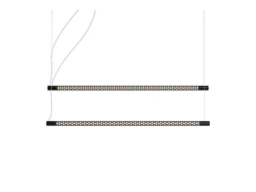 Squiggle H10 Pendel 3000K Matt Black fra Rotaliana er en unik og stilfuld belysningsløsning, der vil tilføje et kunstnerisk touch til dit hjem. Denne pendel, fremstillet i robust metal og i en elegant sort farve, er inspireret af Lucio Fontanas ikoniske Neon structure fra den 9. Triennale i Milano. Med sit innovative design skjuler Squiggle en LED-strip, der kan strække sig op til 6 meter, hvilket giver en imponerende lysoplevelse. De uregelmæssige, sekskantede huller i den ophængte, rørformede exoskelet skaber fascinerende geometriske former, der spænder fra brudte kurver til det uendelige symbol og koncentriske ringe i forskellige størrelser. Denne pendel er perfekt til at skabe en moderne og dynamisk atmosfære i ethvert rum, hvad enten det er over spisebordet, i stuen eller i en entré. Med Squiggle H10 får du ikke blot en lampe, men et kunstværk, der lyser op i dit hjem.