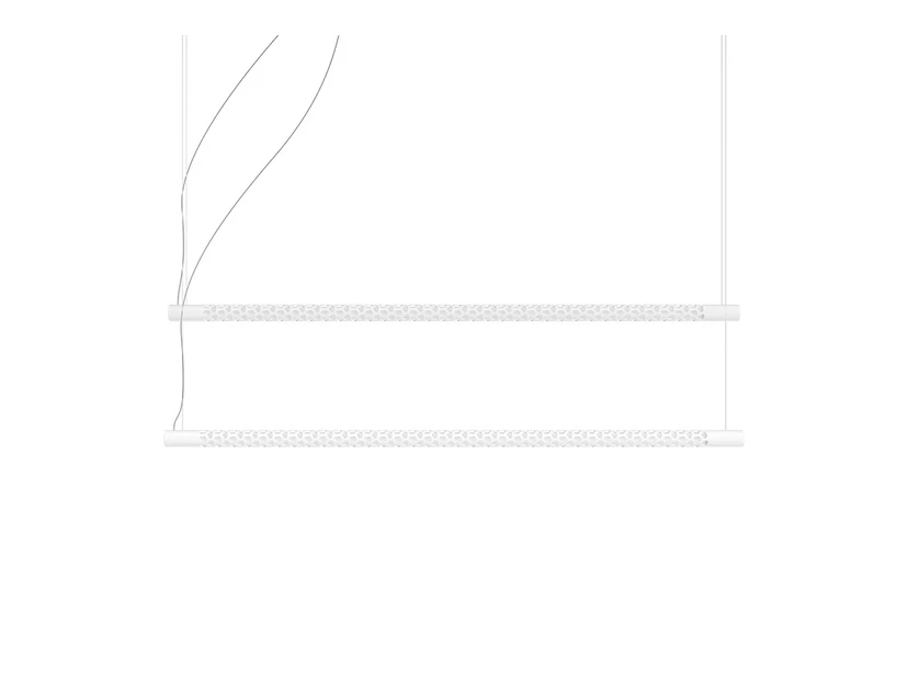 Squiggle H10 Pendel 3000K Matt White fra Rotaliana er en unik pendel, der bringer kunst og funktionalitet sammen i dit hjem. Inspireret af Lucio Fontanas Neon structure fra den 9. Triennale i Milano, er denne pendel et mesterværk af design og teknologi. Den består af et ophængt, tubulært metalskelet, der skjuler en LED-strip på op til 6 meter. De uregelmæssige, sekskantede huller i den hvide metalstruktur skaber fascinerende geometriske former, der spænder fra brudte kurver til det uendelige symbol og koncentriske ringe i forskellige størrelser. Denne pendel er ikke kun en lyskilde, men også et kunstværk, der kan transformere ethvert rum med sit moderne og stilfulde udtryk. Den matte hvide farve gør den alsidig og let at integrere i forskellige indretningsstile, mens det holdbare metal sikrer langvarig kvalitet. Oplev, hvordan Squiggle H10 kan forvandle dit hjem med sit unikke lysdesign.