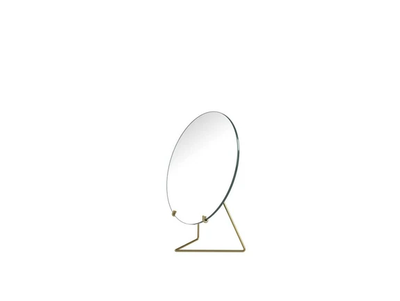 Standing Mirror Ø20 Brass er en pæn og praktisk tilføjelse til bordet, kommoden, hylden, chatollet eller vindueskarmen. Spejlet er forholdsvist minimalistisk designet med en rund skive og en tynd ramme med tilhørende fod, der får spejlglasset til at stå oprejst. Rammen kan fås i to forskellige udgaver. Den ene er fremstillet af stål med en sort pulverlakering, der smukt matcher designets minimalistiske udtryk, mens den anden variant har en messingramme, der giver tilføjer et klassisk strejf til den overordnede konstruktion.