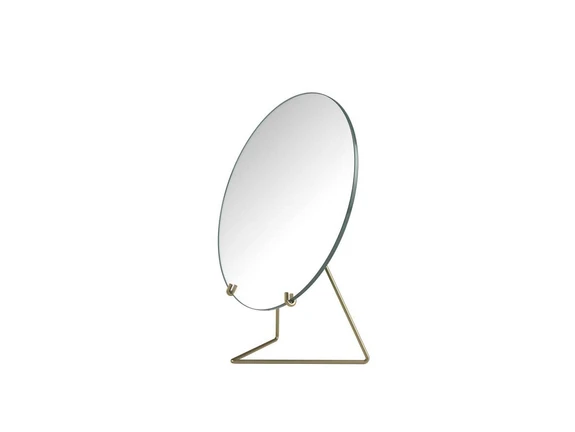 Standing Mirror Ø30 Brass er en pæn og praktisk tilføjelse til bordet, kommoden, hylden, chatollet eller vindueskarmen. Spejlet er forholdsvist minimalistisk designet med en rund skive og en tynd ramme med tilhørende fod, der får spejlglasset til at stå oprejst. Rammen kan fås i to forskellige udgaver. Den ene er fremstillet af stål med en sort pulverlakering, der smukt matcher designets minimalistiske udtryk, mens den anden variant har en messingramme, der giver tilføjer et klassisk strejf til den overordnede konstruktion.