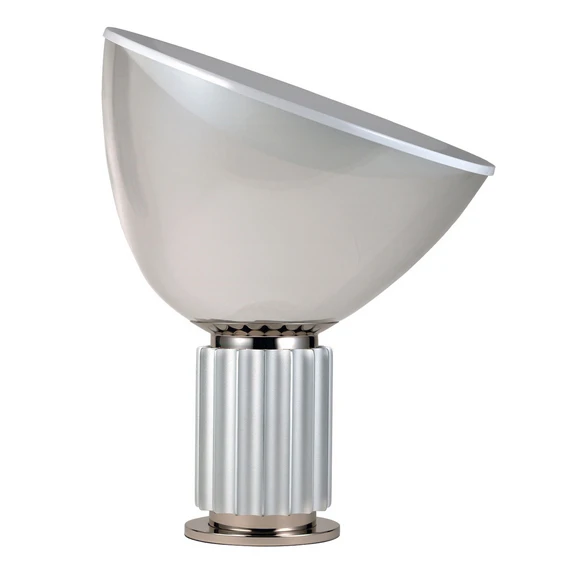 Taccia Bordlampe i silver, som nu er lanceret i plast, er en lampe med en historie og en lampe der designmæssigt kan følge med tiden, selvom den nu næsten er 60 år gammel.