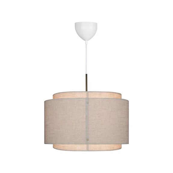 Takai Pendel Beige er en hyggelig og samtidig stilorienteret lampemodel, der er perfekt til at skabe en afslappet stemning i rummet med sin behagelige belysning. Lampen er en del af Takai-serien, der består af en bordlampe, en væglampe og en pendel. Bordlampen er forsynet med en marmorfod med individuelle åretegninger på overfladen, som skaber et individuelt look, samtidig med at den fornemme natursten automatisk gør lampens design eksklusivt. Alle lamperne i Takai-serien har den samme karakteristiske dobbeltskærm af hvidt tekstil. Stoffet er af hør og forholdsvis tætvævet, så lyset trænger ud i et blødt og blændfrit skær, der spreder sig ensartet ud i rummet.