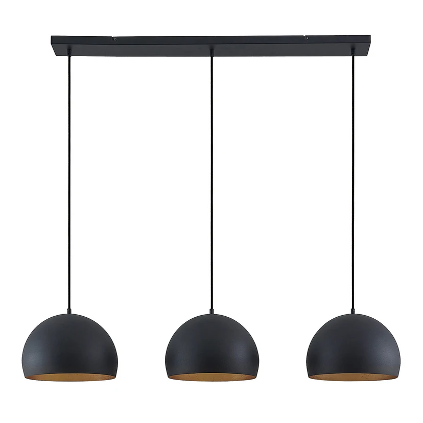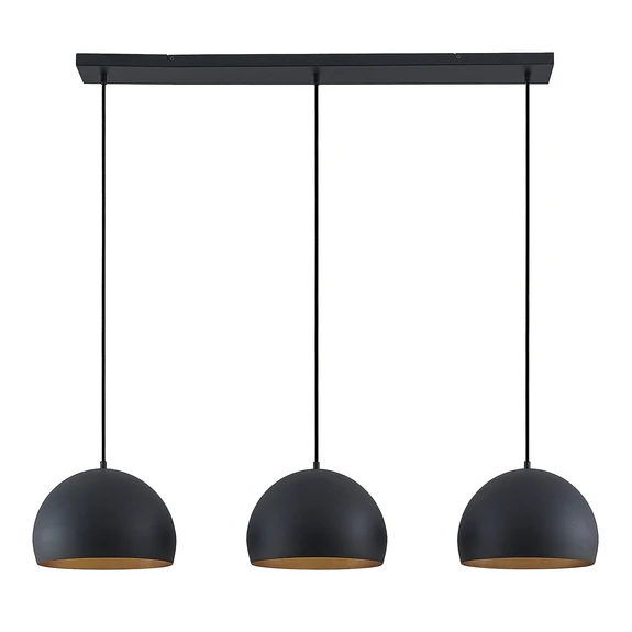Tarjei Pendel Black/Gold er den oplagte kandidat over spisebordet i det stilorienterede hjem. Det flotte farveskema, enkle former og symmetriske konstruktion giver en fornemmelse af balance, der beriger rummet med et stilfuldt udtryk. Både beslaget, pendelsnorene og de tre skærme har en mat, sort overflade for nemt at kunne glide ind i omgivelserne. I kontrast til det mørke ydre er skærmenes inderside domineret af en skinnende gylden nuance, der både skaber et flot komplement til den mørke yderside og samtidig reflekterer lyset, så det fremstår varmt og indbydende.