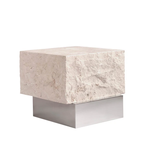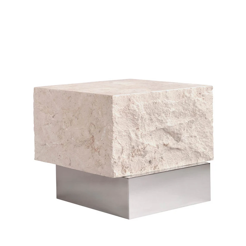 Temple Bord Low Chrome/Limestone fra 101 Copenhagen er et unikt stykke boligtilbehør, der kombinerer moderne design med klassiske arkitektoniske referencer. Dette sidebord fra 101 Copenhagen er fremstillet af metal og smuk beige kalksten, der giver en rig tekstur med små huller og naturlige uregelmæssigheder. Bordet består af to forskudte blokke, der skaber en dynamisk overflade, perfekt til at fremvise dine yndlingsgenstande. Med dimensionerne 40 cm i længden, 42 cm i bredden og 35 cm i højden, passer det perfekt som et sofabord, sidebord eller piedestal.