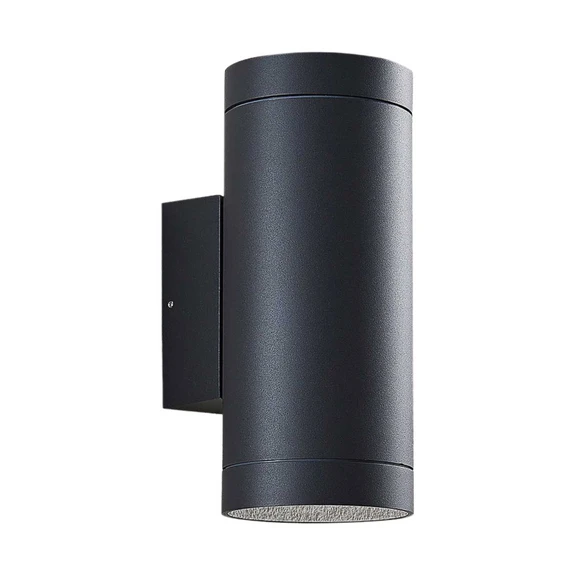 Thomke Udendørs Væglampe Dark Grey byder på en praktisk løsning til belysning af udendørsområder, eks. på facaden eller ved døre og indgangspartier. Lampen har en cylindrisk form og en grafitgrå overflade, der gør den nem at integrere i mange forskellige typer miljø og stil.