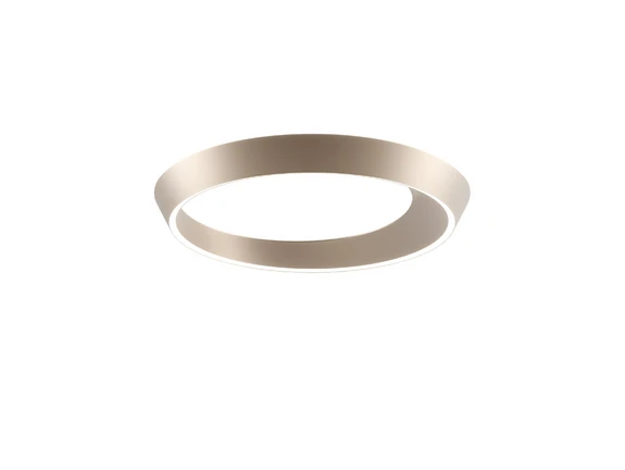 Tidal Loftlampe 2700K Golden fra Lodes er en elegant loftlampe i aluminium med en gylden finish. Denne ringformede lampe er inspireret af tidevandets bevægelser og himmellegemer, hvilket giver den et unikt og dynamisk udtryk. Med sit flydende og ovale design, hvor den ene side er bredere end den anden, ændrer lampen udseende afhængigt af din position under den. Tidal projicerer lys både opad og nedad, hvilket skaber en behagelig belysning i rummet. Den støbte aluminiumskonstruktion skjuler diskret alle tekniske elementer, hvilket fremhæver lampens æstetiske værdi. Med en diameter på 60 cm fås Tidal i fire matte farver: hvid og den nye sorte finish, der passer til minimalistiske indretninger, samt terra og champagne, der tilføjer en dekorativ og varm elegance til ethvert rum. Denne lampe er perfekt til at skabe en stilfuld atmosfære i dit hjem. .