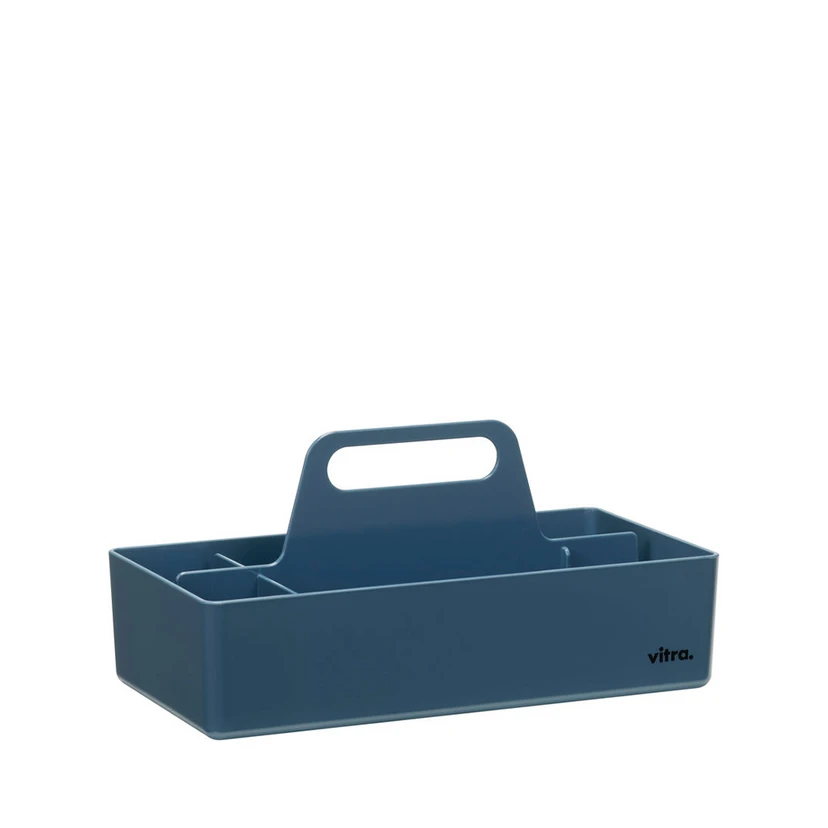 Toolbox RE Sea Blå fra Vitra er den ideelle løsning til dig, der ønsker en praktisk og stilfuld værktøjskasse til organisering og transport af små arbejdsredskaber og tilbehør. Denne smarte opbevaringskasse er fremstillet af postindustriel genanvendt ABS-plast, hvilket gør den både miljøvenlig og 100 % genanvendelig, når den engang har udtjent sin funktion. Den blå farve tilføjer et friskt pust til dit arbejdsområde, selvom der kan forekomme små farvevariationer fra produkt til produkt på grund af det genanvendte materiale. Toolbox RE er designet til midlertidig udendørs brug, men vi anbefaler at undgå længerevarende eksponering for regn, sne eller direkte sollys. Den kan dog sagtens opbevares i overdækkede udendørsområder, hvor den er beskyttet mod vejret. Uanset om du bruger den i hjemmet, værkstedet eller haven, vil denne værktøjskasse fra Vitra være en uundværlig hjælper i din hverdag.