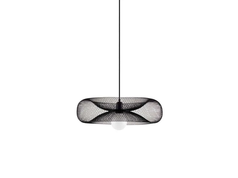Er definerende træk ved designet af Torus Pendel er det fantastiske samspil mellem lethed og tyngde. Skærmen er fremstillet af galvaniseret metal med en monokrom, sort overflade. Både materiale og farvevalg har et bastant udtryk. Dette modsvares på harmonisk vis af den sarte gitterstruktur og den bløde, buede udformning, der tilføjer et organisk udtryk til lampens design og giver den en slående lighed med en sommerfugl. Lyskilden hænger på undersiden og er frit synlig, så der kan spredes en klar og direkte belysning, når lampen er tændt.