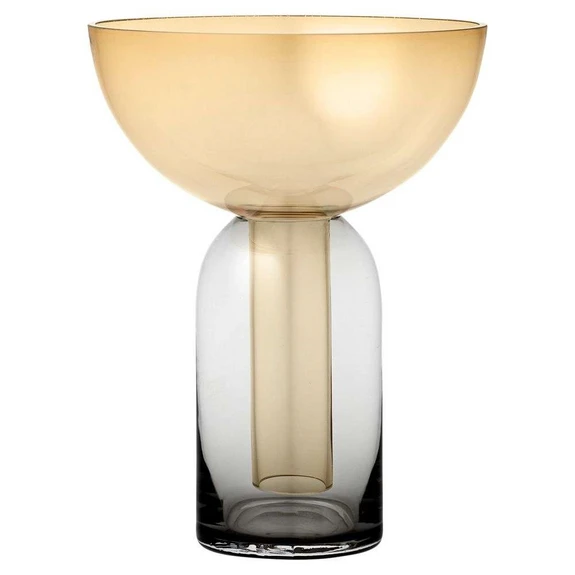 Torus Vase Ø15 Black/Amber adskiller sig fra alle de andre almindelige vaser med sit unikke statement design, som tilføjer en vis eksklusivitet og elegance til enhver boligindretning. Vasen er perfekt til blomsterdekorationer, grene og planter, men kan også sagtens stå uden noget i, hvor dens enestående design kommer til sin ret. Torus vasen består af to farverige glasstykker, der tilsammen skaber en elegant og skulpturel vase, som giver et ekstra pift til indretning, hvor den skaber blikfang og beundring. Torus vase kommer i forskellige flotte farver og størrelser, så du kan få præcis dén vase, der passer bedst til dit behov og din smag.
