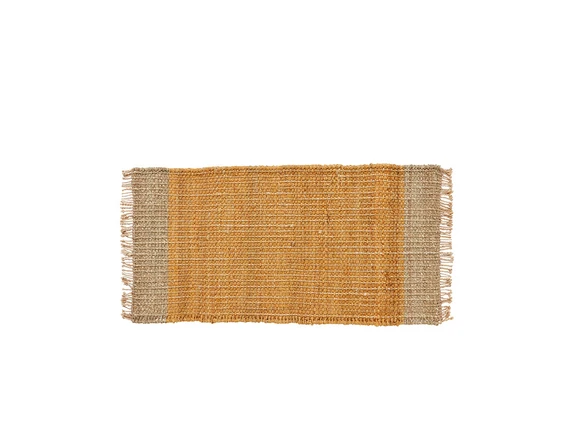 Trap Rug 70x140 Golden fra House Doctor er det perfekte gulvtæppe til at tilføre dit hjem en afslappet og uformel stemning. Med sine jordfarver i træ og orange samt dekorative frynser, bringer dette tæppe masser af tekstur og lethed ind i din indretning. Fremstillet af jute og søgræs, er tæppet både slidstærkt og alsidigt, hvilket gør det nemt at kombinere med dine eksisterende møbler og dekorationer. Den kompakte størrelse på 70x140 cm gør det ideelt til brug i entreen, under et lille sidebord eller som et dekorativt element på stuegulvet. Uanset hvor du placerer det, vil Trap Rug skabe balance og tilføre en ekstra dimension til rummet. Giv dit hjem et og hyggeligt touch med dette smukke tæppe fra House Doctor.