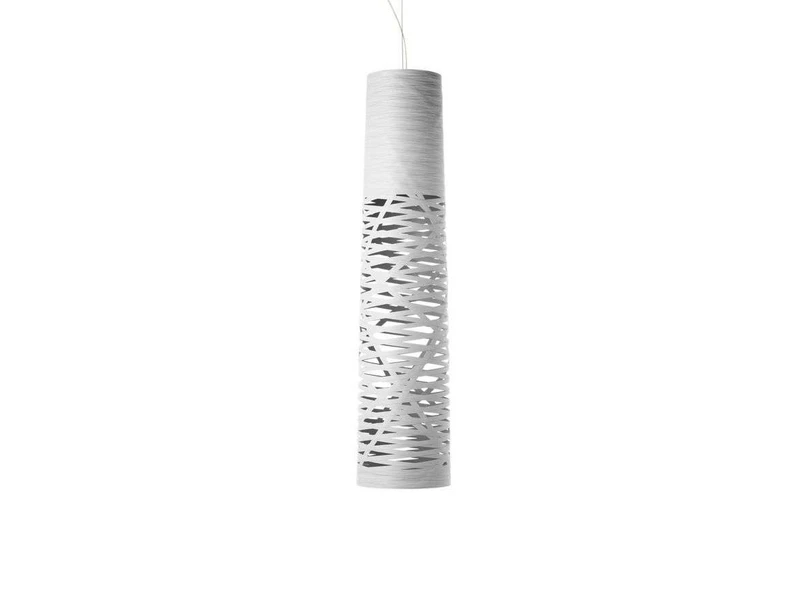 Tress Pendel 2m Medium White er en detaljeorienteret lampe med et interessant design, der fanger beskuerens blik fra første færd. Lampen har en forholdsvis enkel og geometrisk ren udformning. Overfladen er imidlertid perforeret af et sindrigt hulmønster, der får skærmens materiale til at minde om en flettet struktur. Skærmen er fremstillet af kompositmateriale på en lakeret glasfiberbase – et sindrigt spind af tråde og harpiks, der fungerer som udsmykning, struktur og diffuser på samme tid. Kombinationen af åben og lukket struktur skaber et smukt lysspil, hvor lyset kan trænge ud gennem hullerne men samtidig er afdækket af skærmen, så lyset fremstår diffust og blændfrit. Hulstrukturen skaber et fascinerende samspil mellem lys og skygge, der projiceres ud til alle sider af lampen og skaber en yderst dekorativ belysning.